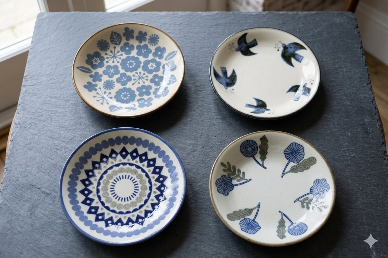 釉薬の垂れや滲みが見られることが ございます。また、模様の部分に色 のムラなどの個体差が見られることが ございます。これは窯変の手法の特徴です。手作りの陶器ならではの風合いとしてお楽しみください。