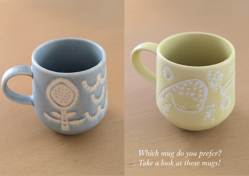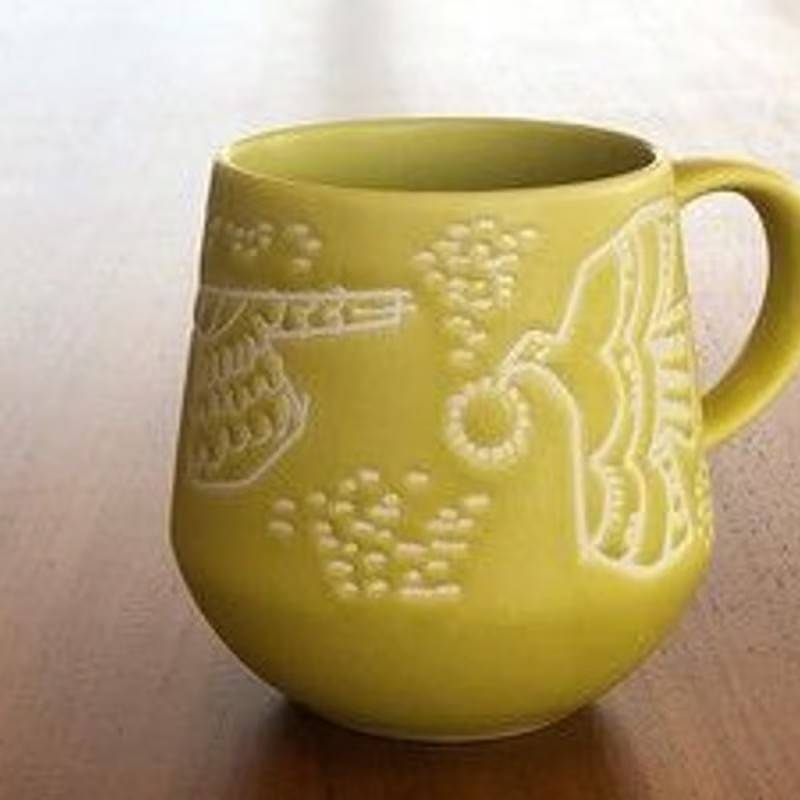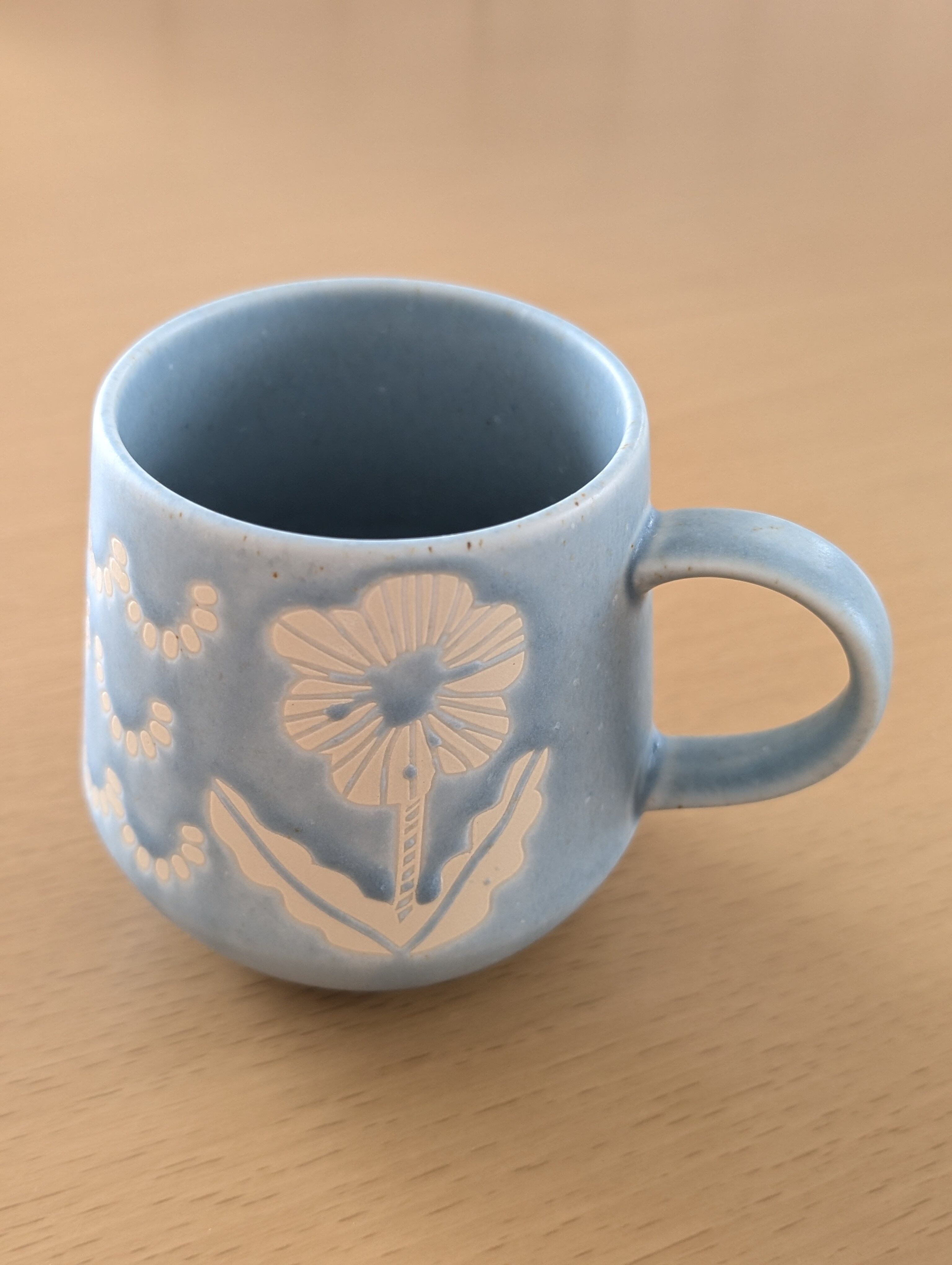マットな釉薬に北欧風の自然をモチーフにした花や鳥が浮かびます。